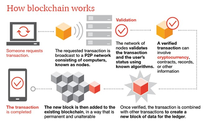 A blockchain is a decentralized ledger of all transactions across a peer-to-peer network. Using this technology, participants can confirm transactions without a need for a central clearing authority. Potential applications can include fund transfers, settling trades, voting, and many other issues.